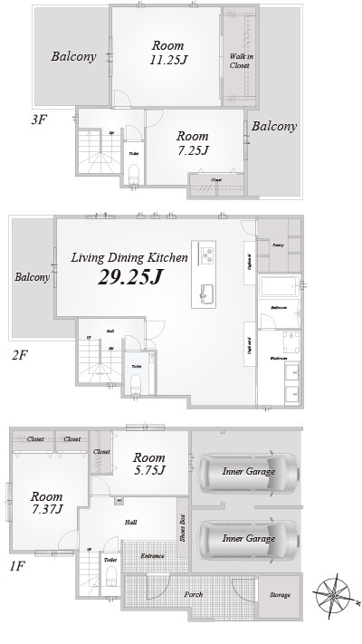 | 間取り | 3LDK+S | 建物構造 | 木造3階建て(テクノストラクチャー) |